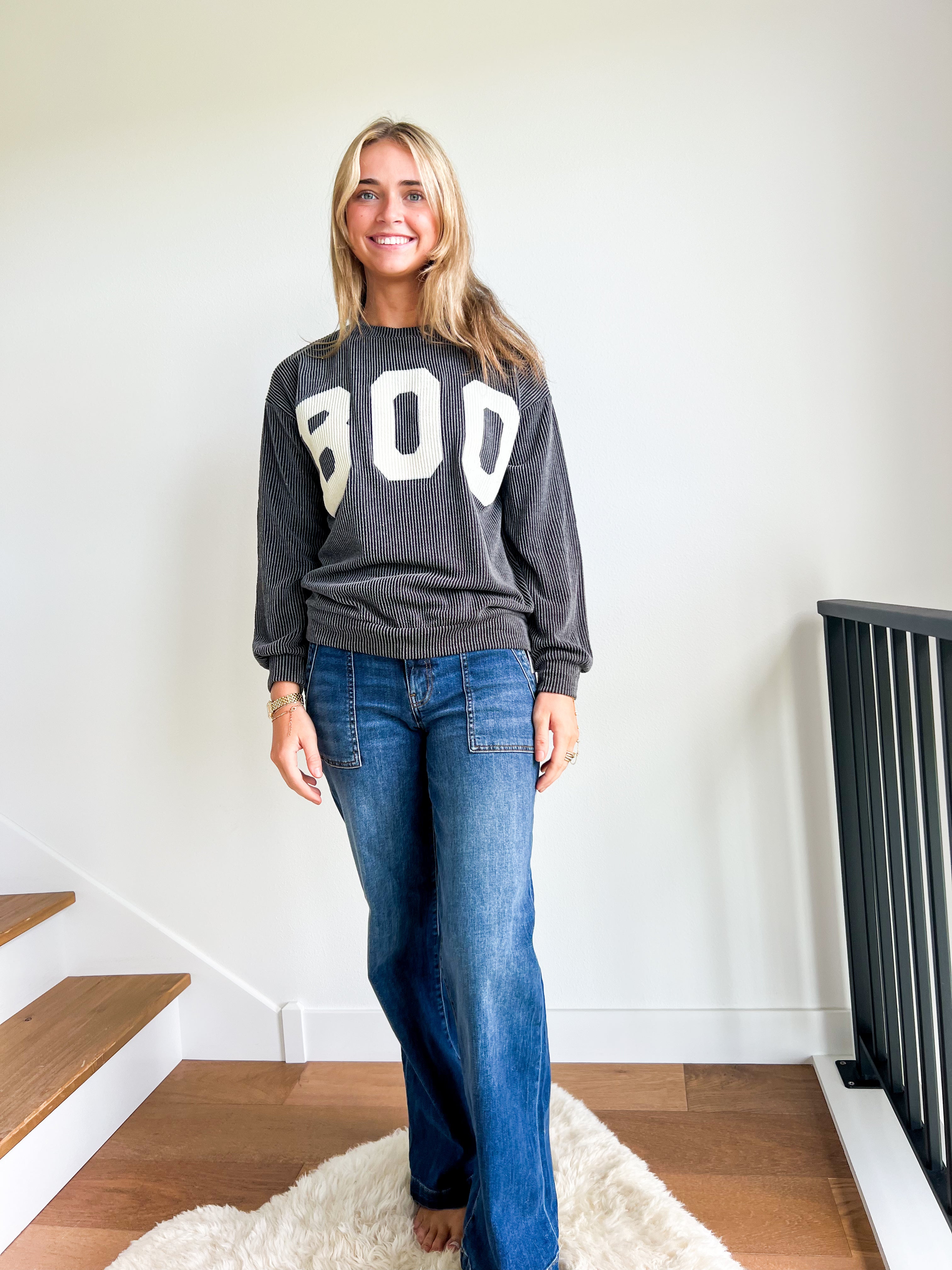 STYLE: Embrace the Halloween spirit with the Boo Halloween Ribbed Long Sleeve, a stylish top designed for festive fun. Its ribbed texture offers a flattering fit and comfortable stretch, making it perfect for seasonal celebrations. The long sleeves provide warmth for crisp autumn nights, while the playful "Boo" theme adds a spooky yet charming touch to your holiday wardrobe. Ideal for layering or wearing solo, this top combines comfort and festive flair expertly.