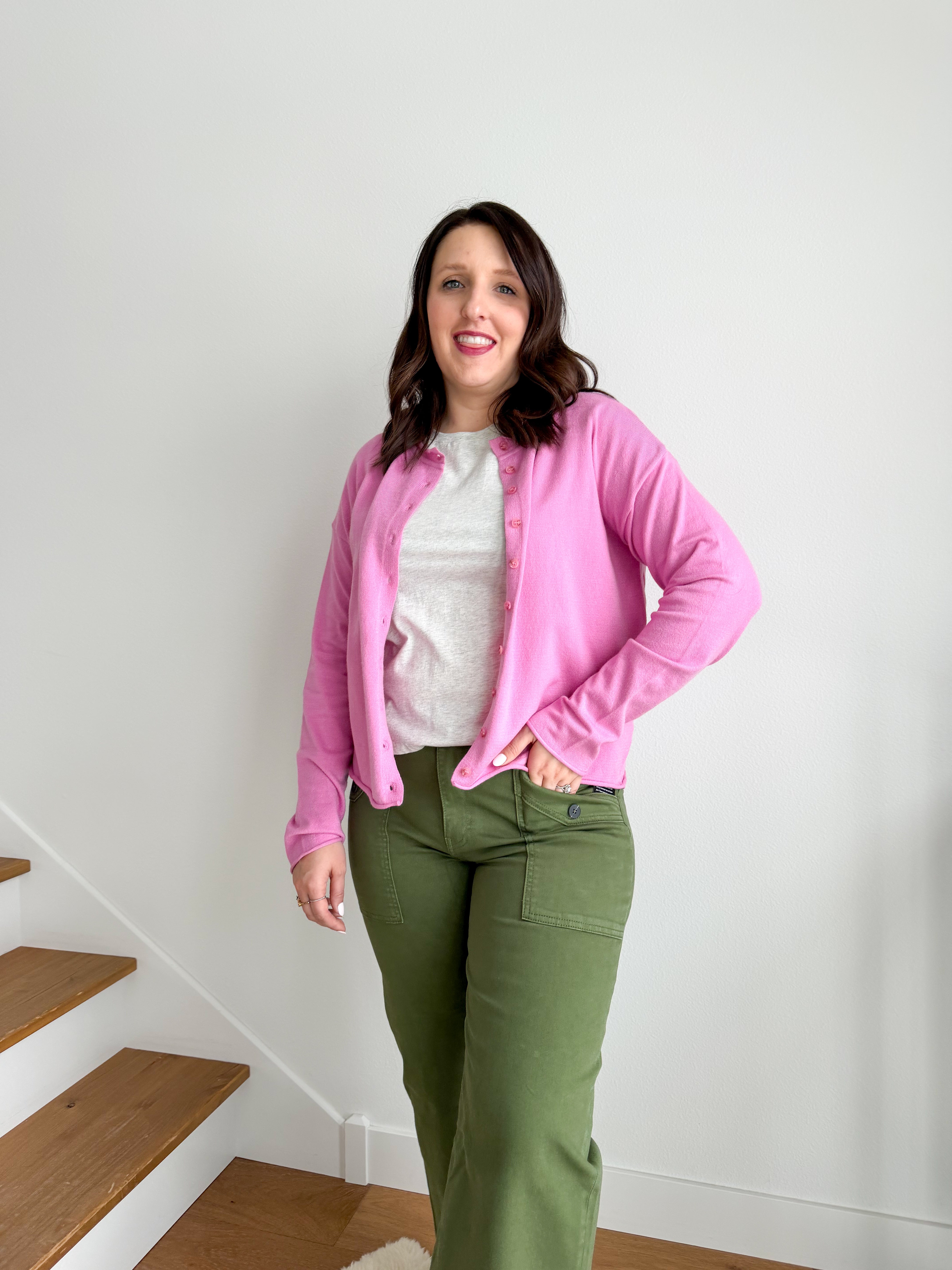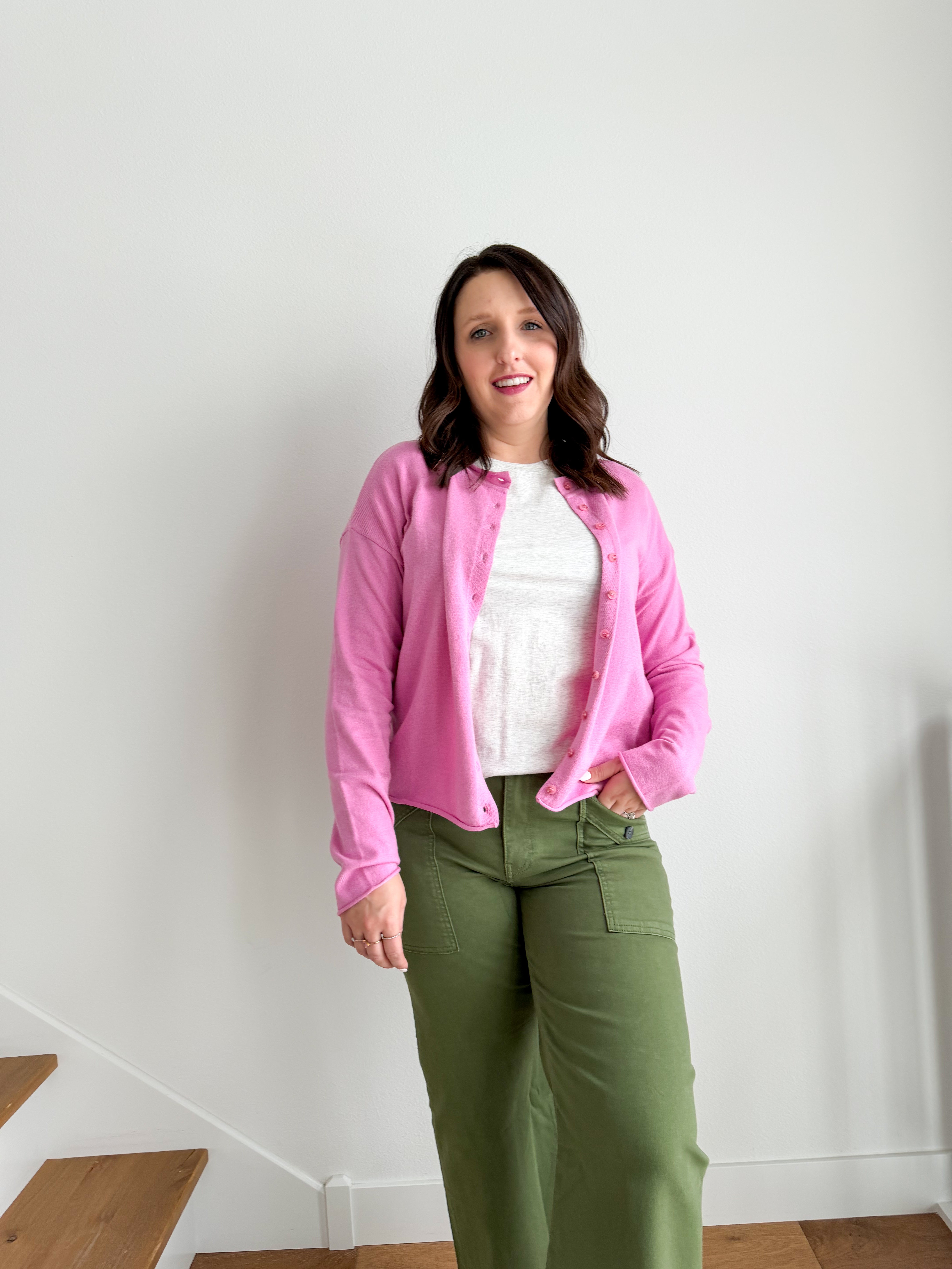 STYLE: Brighten your spring wardrobe with this vibrant fuchsia button-up cardigan. The eye-catching color brings instant energy to any outfit, while the perfectly balanced weight keeps you comfortable as temperatures rise. Layer it over dresses, tees, or tanks for effortless style that transitions seamlessly from cool mornings to warm afternoons. A versatile essential that adds personality and warmth exactly when you need it.
