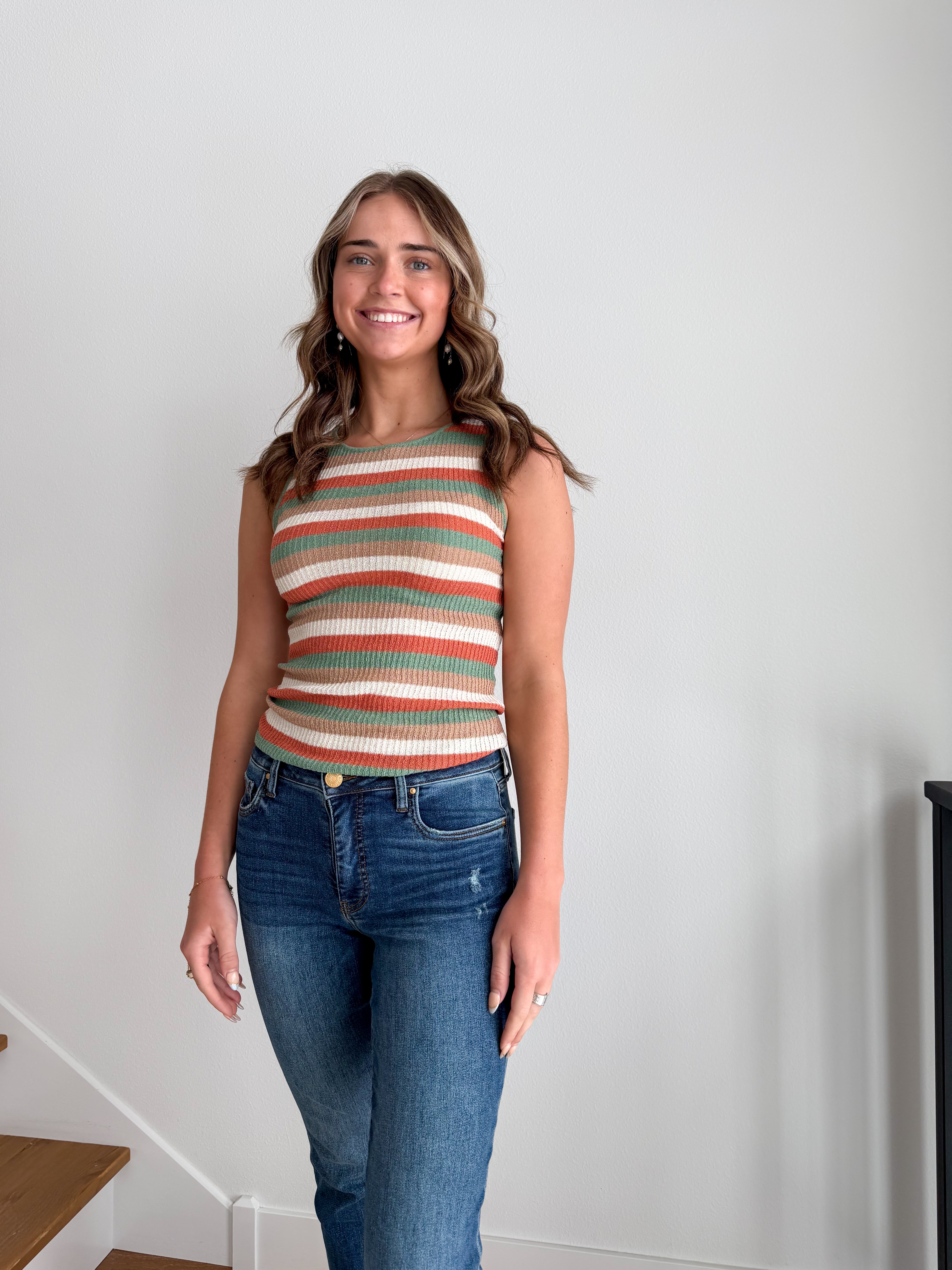 STYLE: The Sally Stipe Tank is your go-to layering piece for effortless style. Crafted from lightweight fabric, it works beautifully on its own during warmer months or layered under jackets and cardigans for added dimension. Available in fun, vibrant colors that let you express your personality while keeping you comfortable all day long.
