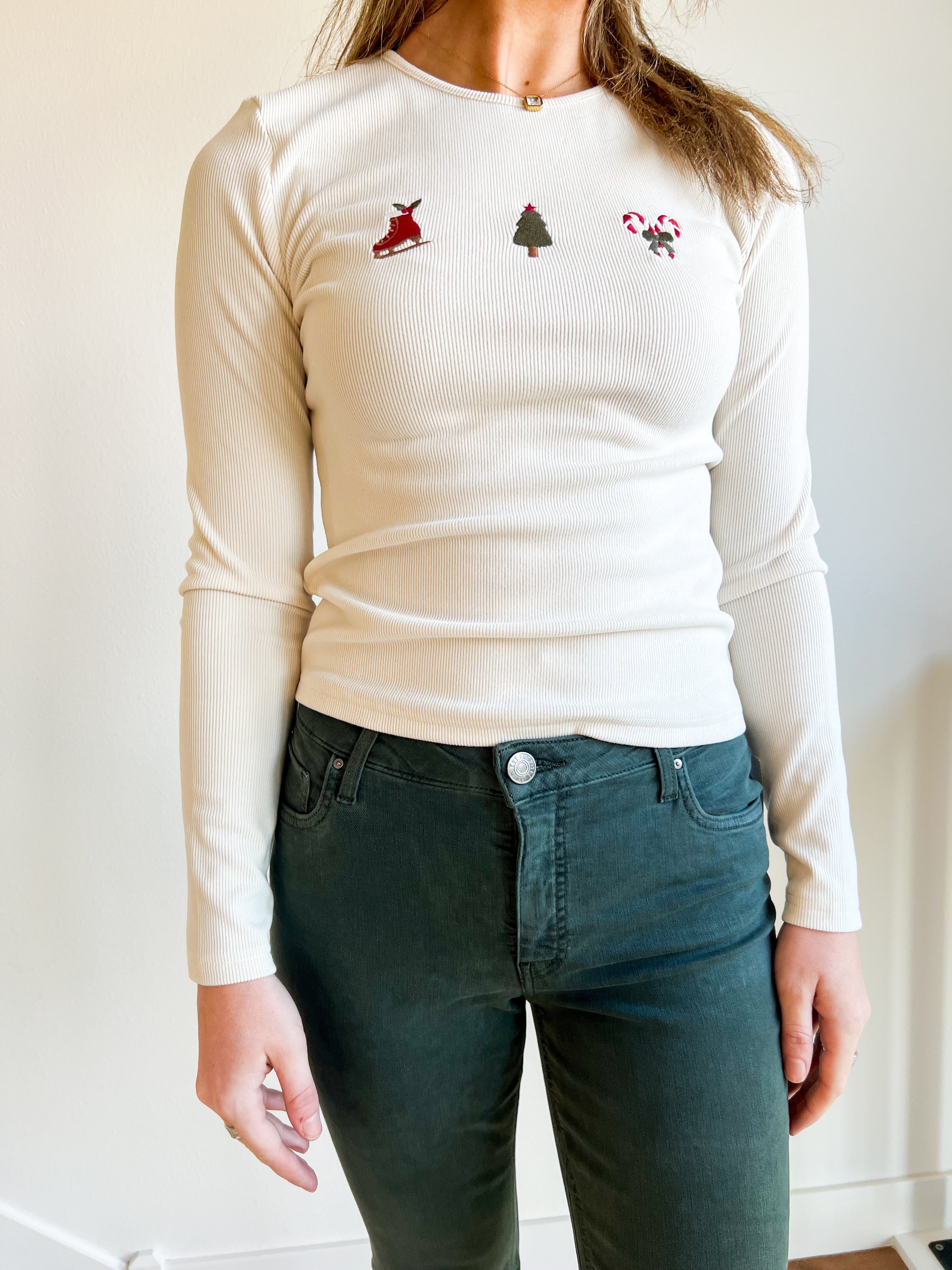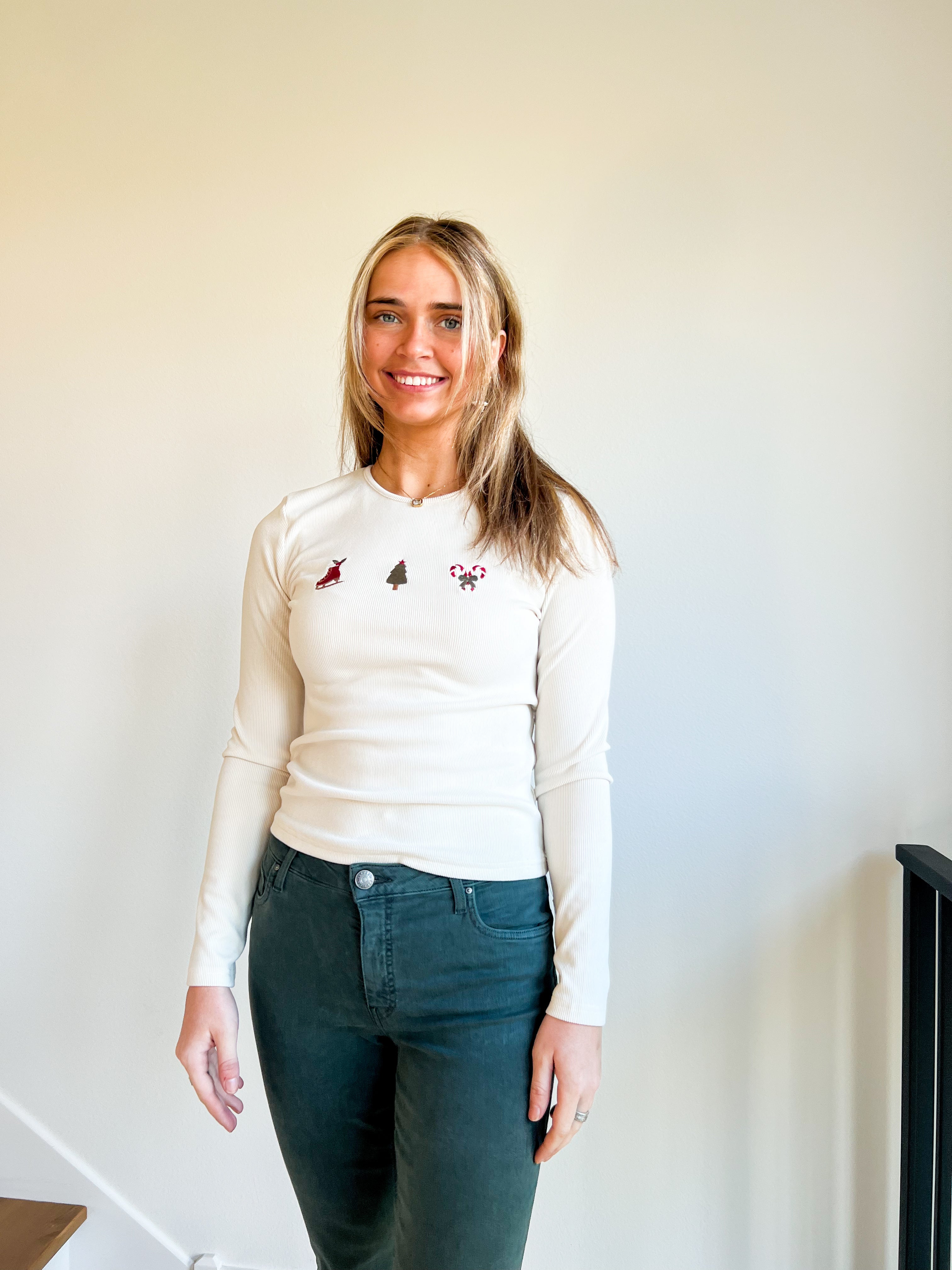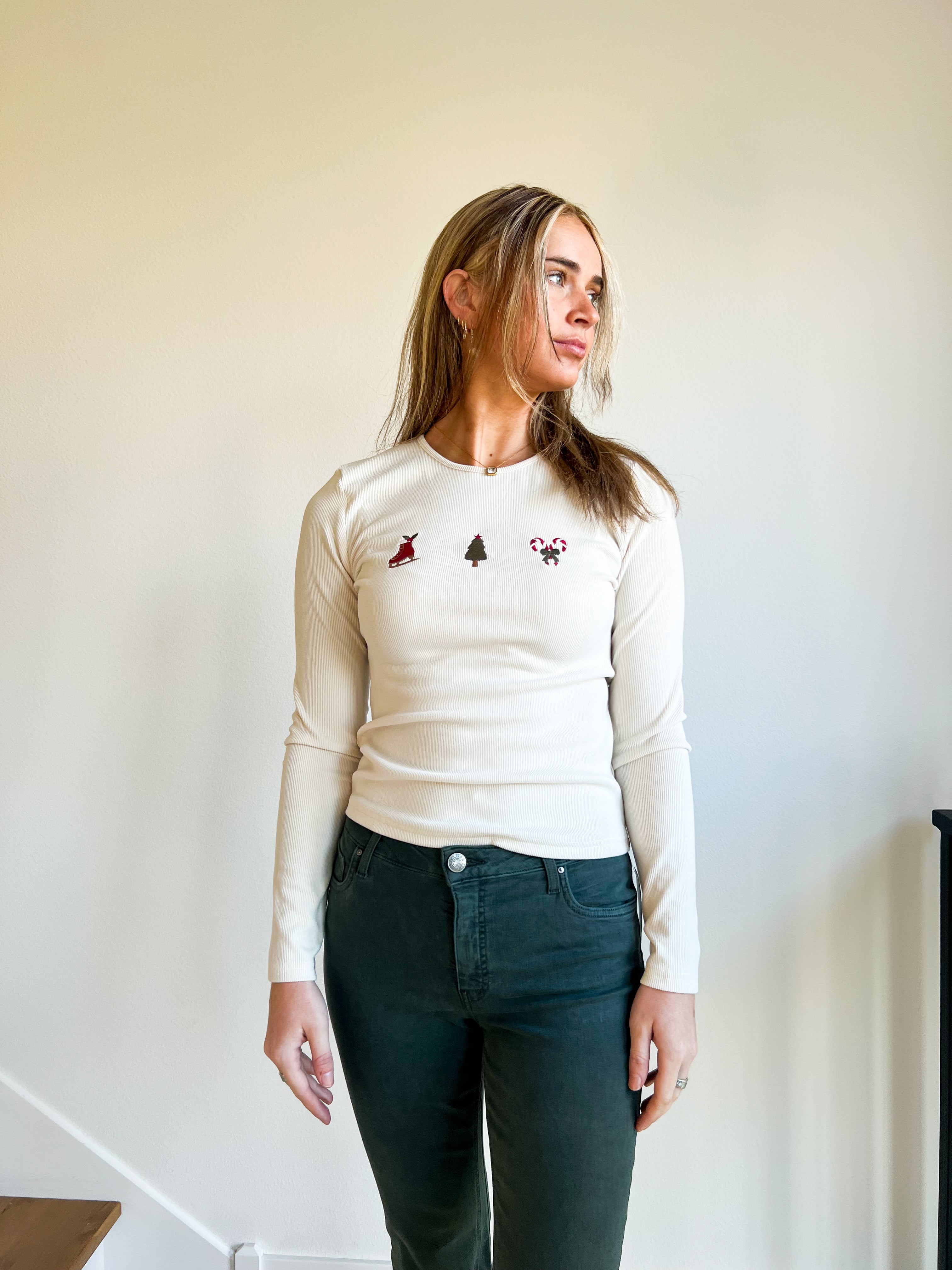 STYLE: Meet your new favorite layering secret. This soft holiday long sleeve slides perfectly under vests, giving you cozy comfort with effortless style all season long.