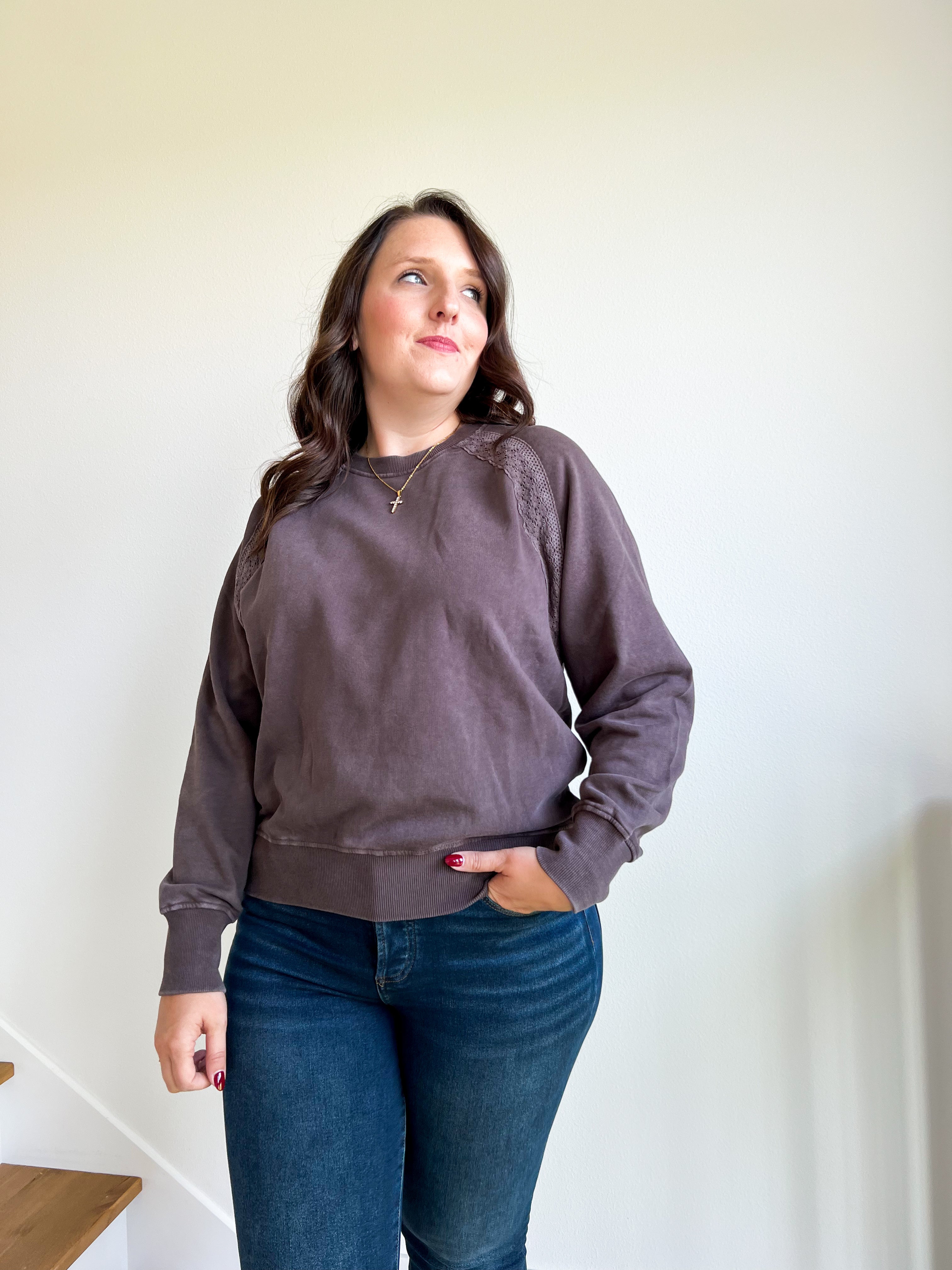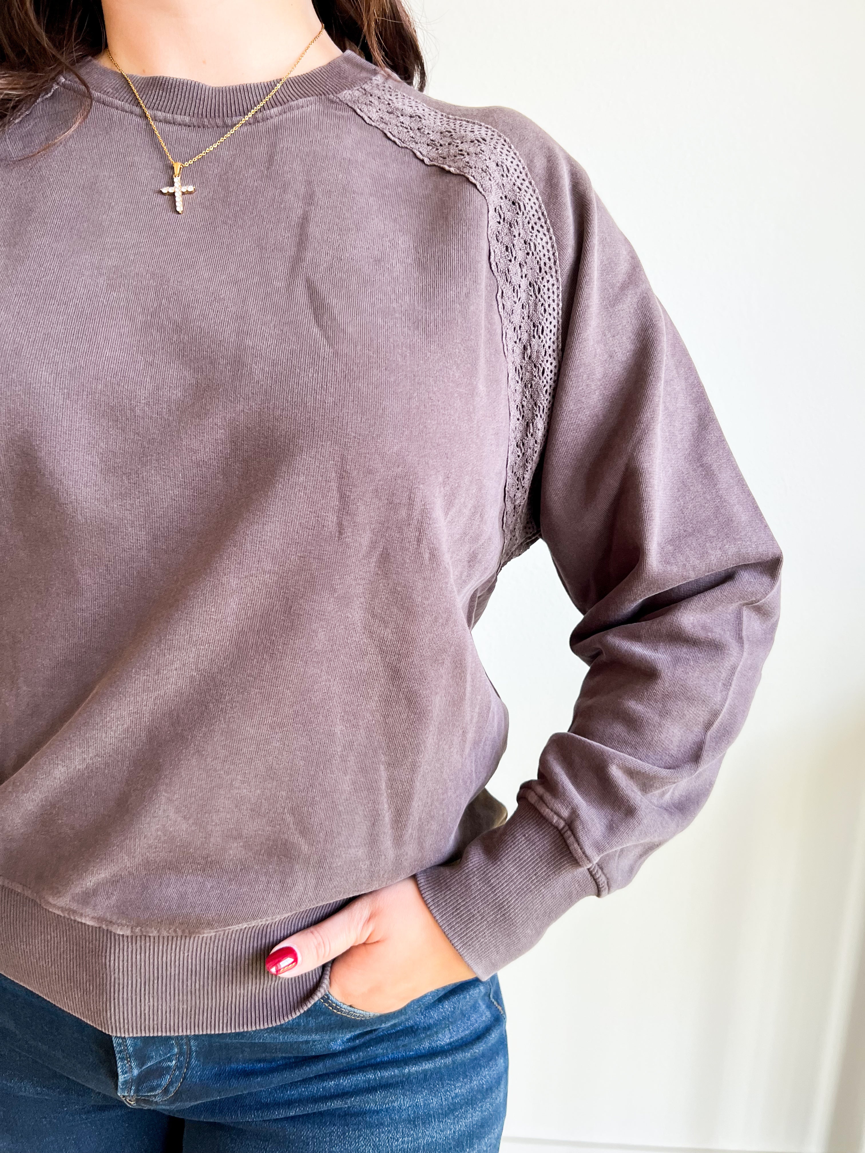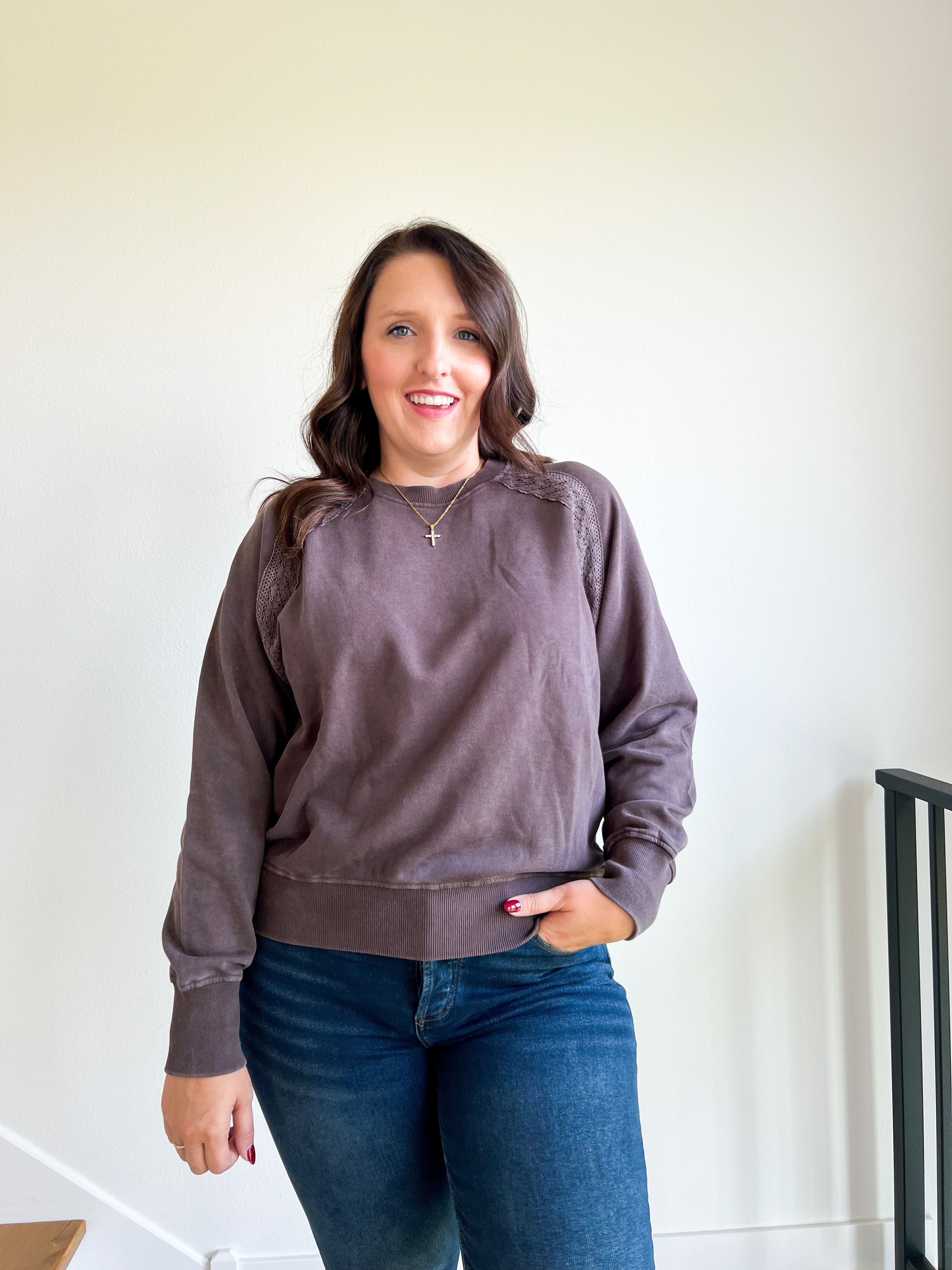 STYLE: The Kali Crewneck blends classic comfort with a touch of elegance through delicate lace detailing. Crafted for everyday wear, it offers a refined look while maintaining soft, breathable fabric for all-day ease. This versatile piece elevates your casual wardrobe with subtle sophistication, making it an expert choice for effortless style.